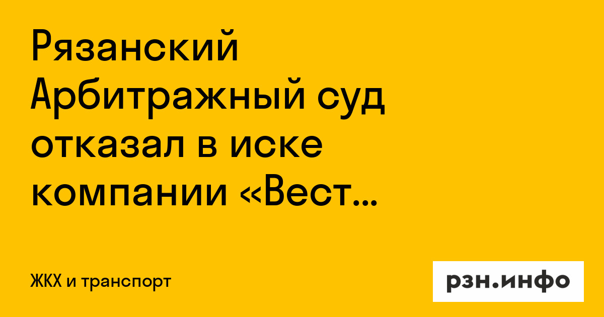 Рязанский Арбитражный суд отказал в иске компании «Вест Лайн»