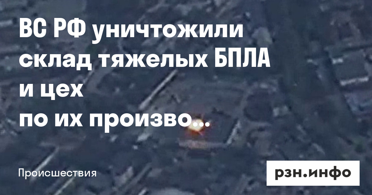 ВС РФ уничтожили склад тяжелых БПЛА и цех по их производству в Запорожье. Об этом сообщает Минобороны.