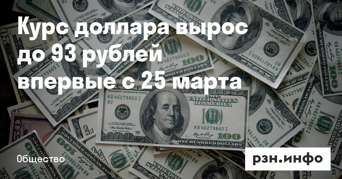 Курс доллара вырос до 93 рублей впервые с 25 марта