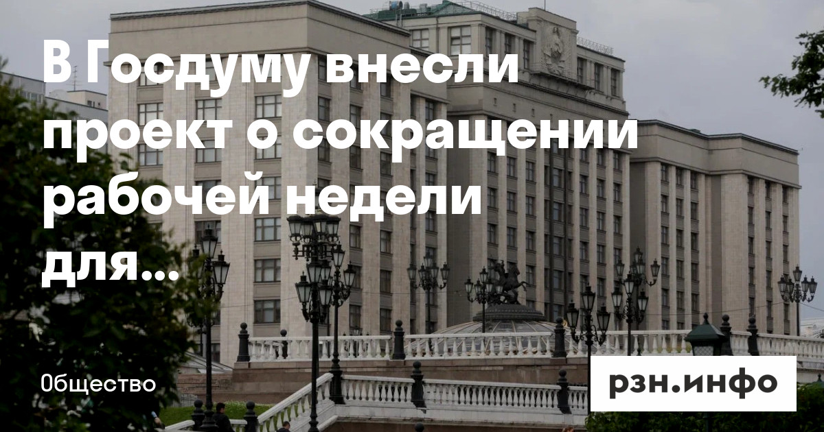Рабочую неделю для многодетных родителей предлагают сократить с 40 до 35 часов. Цель законопроекта — формирование дополнительной возможности для оказания полноценной поддержки детей со стороны родителей. Авторы считают, что сокращение рабочей недели позволит родителям проводить с детьми больше времени.