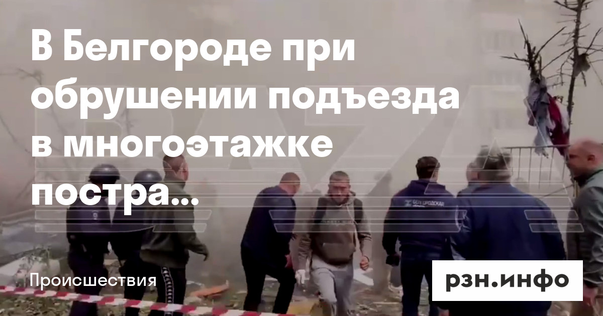 В Белгороде при обрушении подъезда в многоэтажке пострадали 19 человек, в том числе двое детей. Шесть человек отпустили домой на амбулаторное лечение после оказания медпомощи.