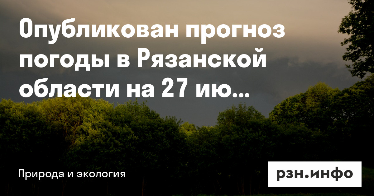 Опубликован прогноз погоды в Рязанской области на 27 июня