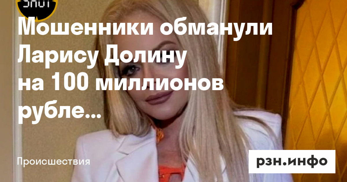 Мошенники обманули Ларису Долину на 100 миллионов рублей. Об этом сообщает Telegram-канал Shot.
