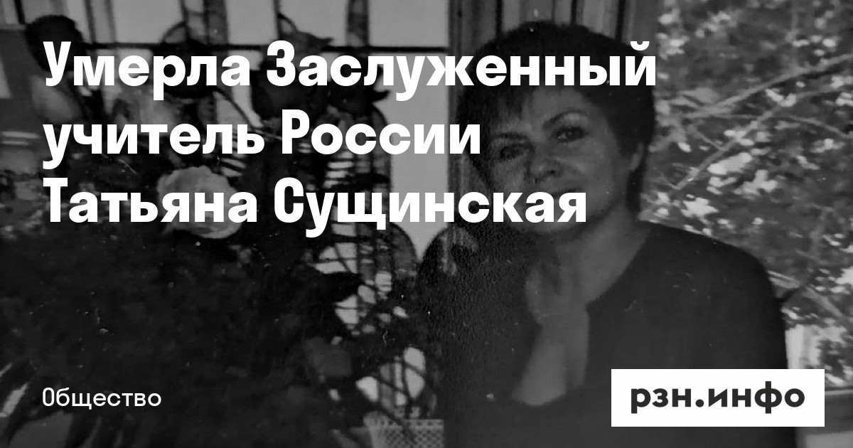 Умерла Заслуженный учитель России Татьяна Сущинская. Об этом в среду, 21 августа, сообщили в пресс-службе рязанского Управления образования и молодежной политики.