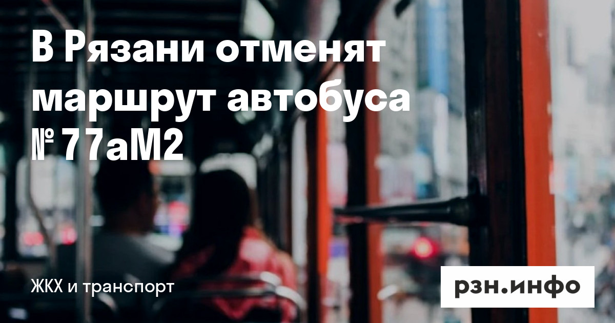 В Рязани отменят муниципальный маршрут автобуса № 77аМ2 «поселок Карцево — поселок Мехзавода». Соответствующее постановление горадминистрации опубликовали на сайте «Рязанских ведомостей».