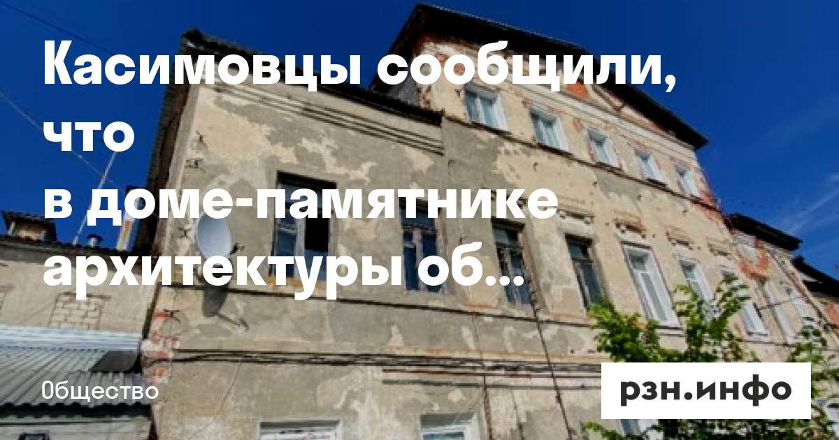 Касимовцы сообщили, что в доме-памятнике архитектуры обрушился потолок