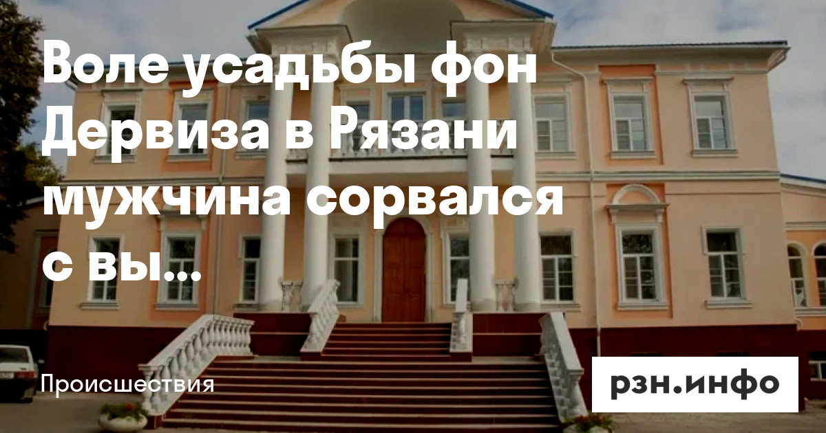 Возле усадьбы фон Дервиза в Рязани мужчина сорвался с высоты. Об этом РЗН. инфо сообщили в пресс-службе полиции.