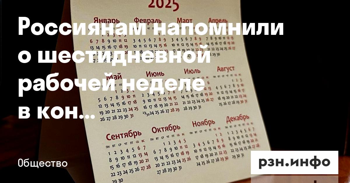 Россиянам напомнили о шестидневной рабочей неделе в конце октября
