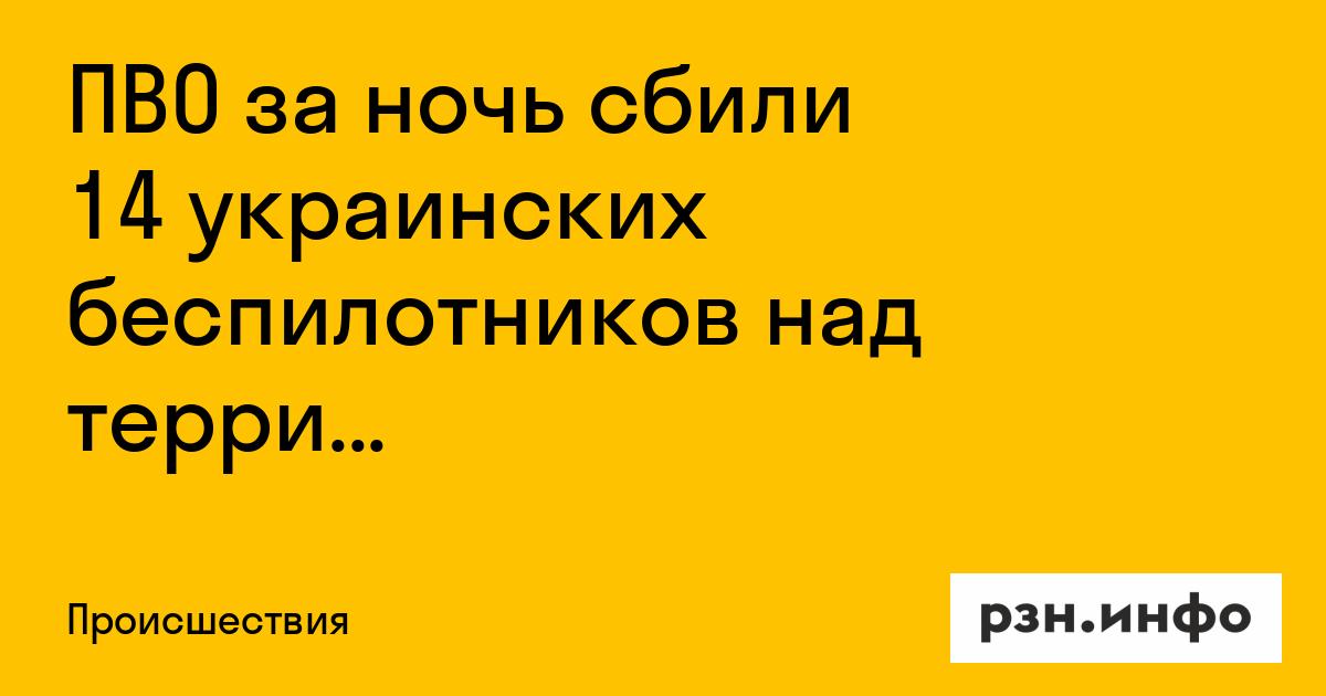 ПВО за ночь сбили 14 украинских беспилотников над территорией Рязанской области.