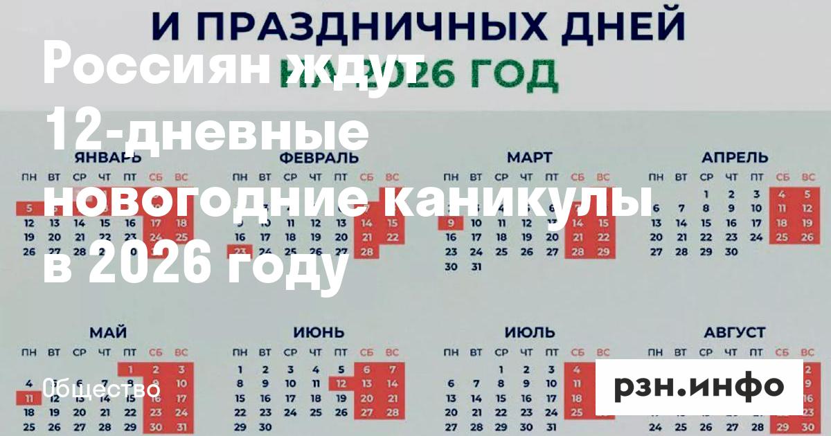 Россиян ждут 12-дневные новогодние каникулы в 2026 году