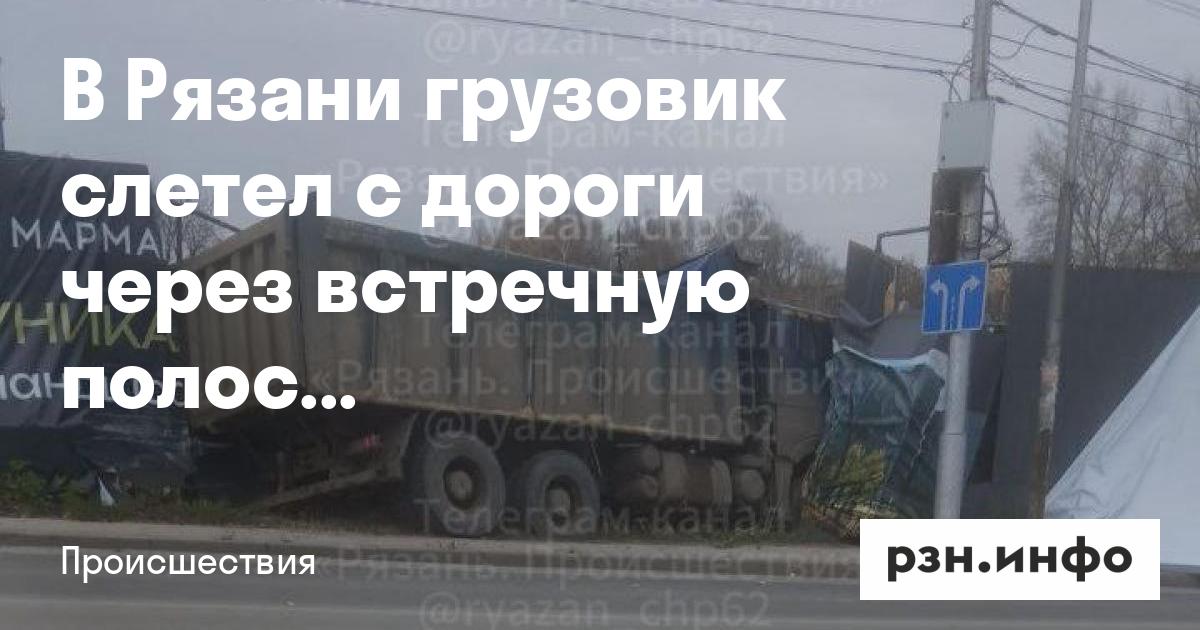 В Рязани грузовик слетел с дороги через встречную полосу и протаранил забор