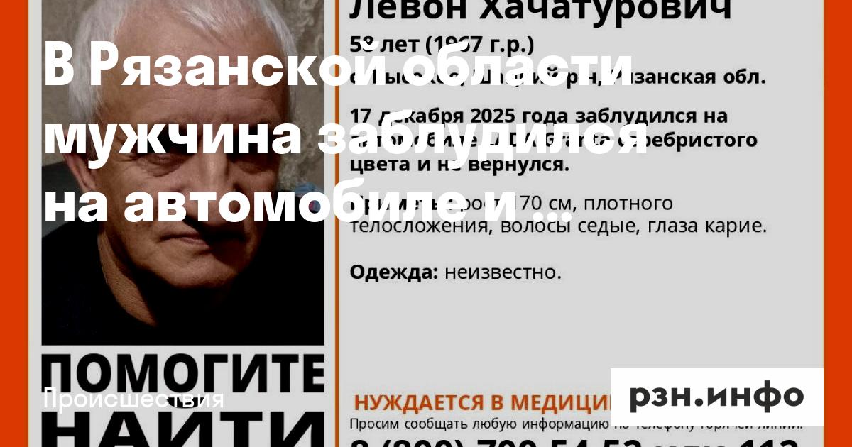 58-летний Левон Степанян из села Высокое Шацкого района пропал 17 декабря. По данным поисков, перед исчезновением мужчина заблудился на автомобиле LADA Granta серебристого цвета.