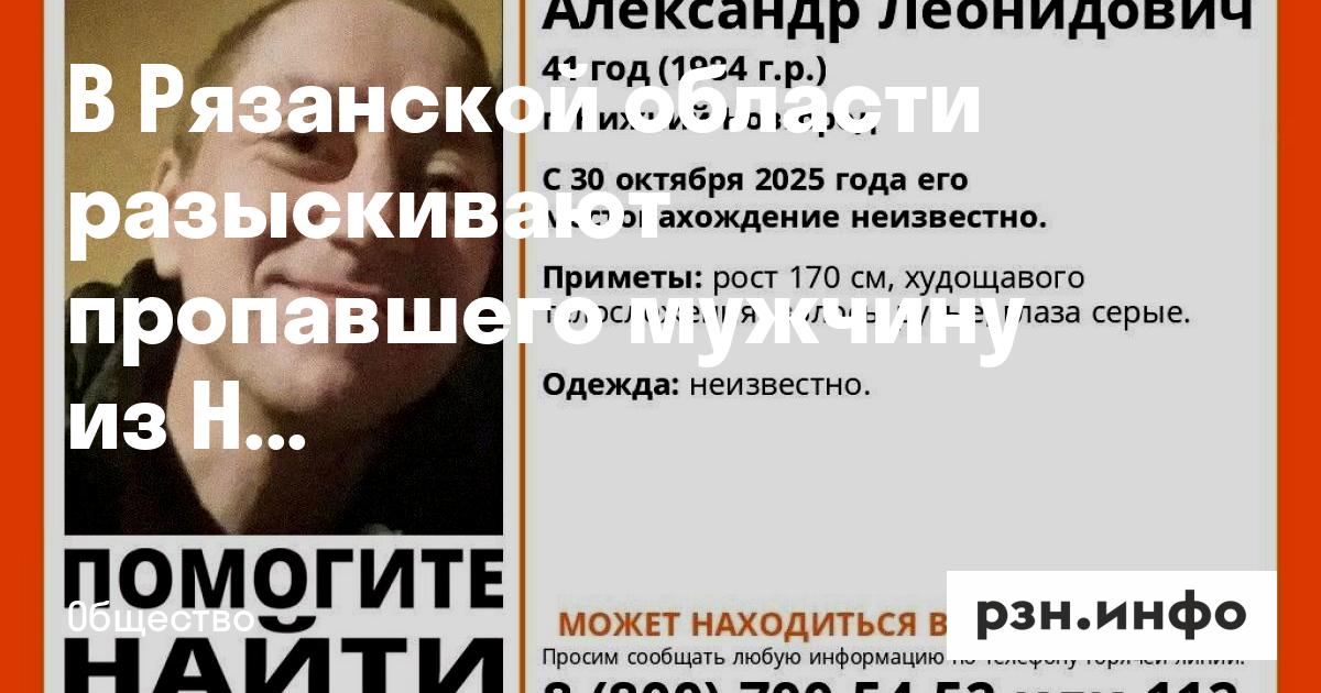 В Рязанской области ищут Абаренова Александра Леонидовича, 41 год (1984 г. р.), уроженца Нижнего Новгорода. С 30 октября 2025 года его местонахождение неизвестно, сообщает ПСО «ЛизаАлерт».