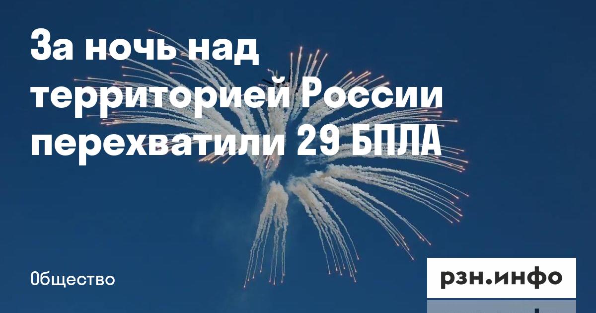 За ночь над территорией России перехватили 29 БПЛА. Об этом сообщила пресс-служба Минобороны РФ.