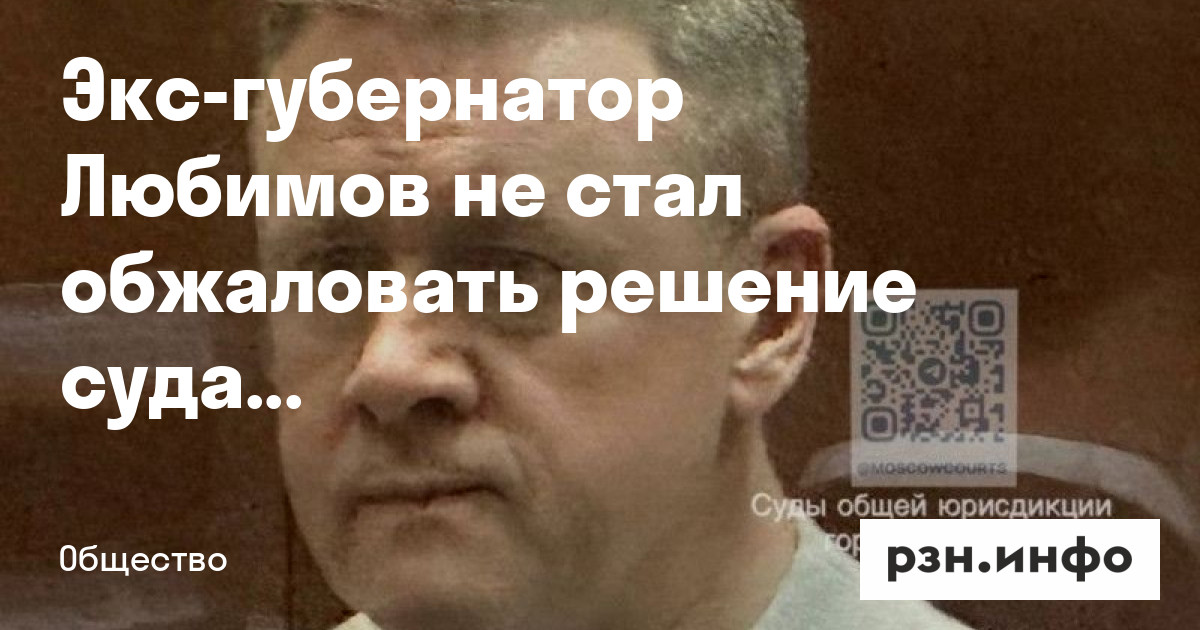 Экс-губернатор Рязанской области Николай Любимов не подал апелляцию на решение Басманного районного суда о продлении ареста. Соответствующая информация появилась в картотеке дела.