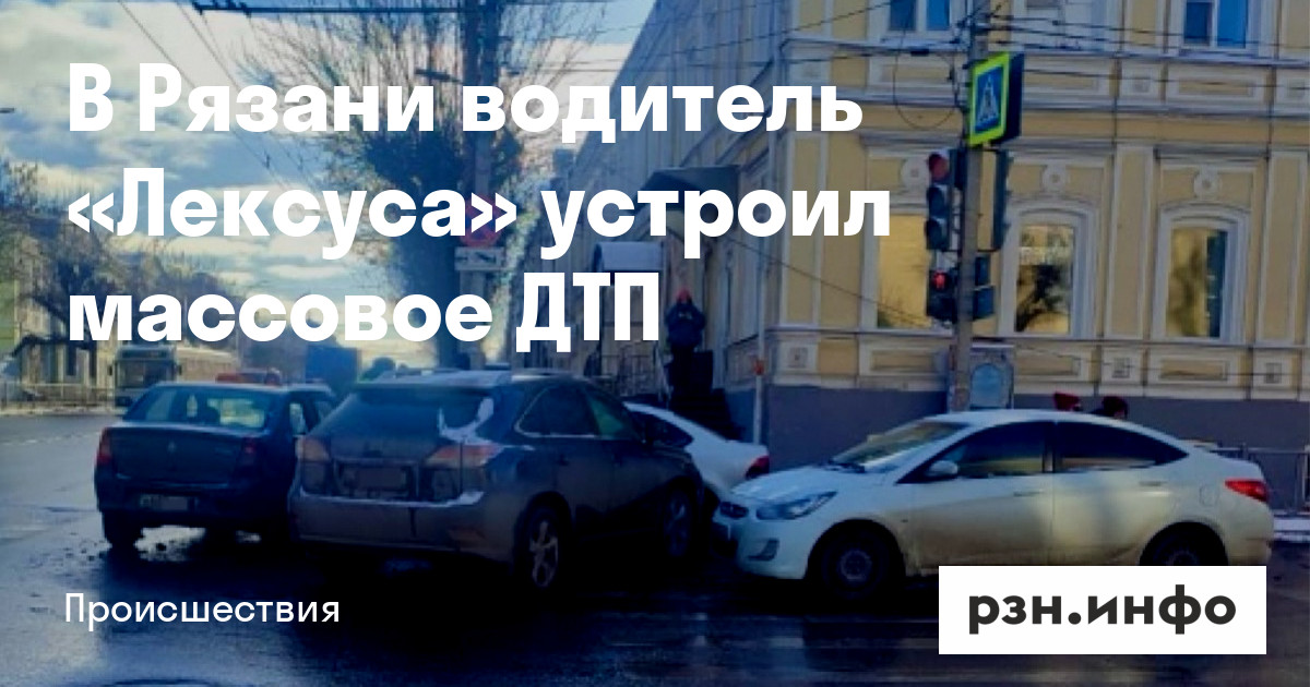 Авария произошла утром 17 февраля вблизи дома № 51/21 на улице Ленина. По предварительной информации, 49-летний рязанец, управляя автомобилем Lexus, столкнулся с автомобилем Renault Logan под управлением 50-летнего местного жителя, автомобилем Volkswagen под управлением 60-летнего жителя Рязани, а также с автомобилем Hyundai под управлением 24-летнего рязанца.