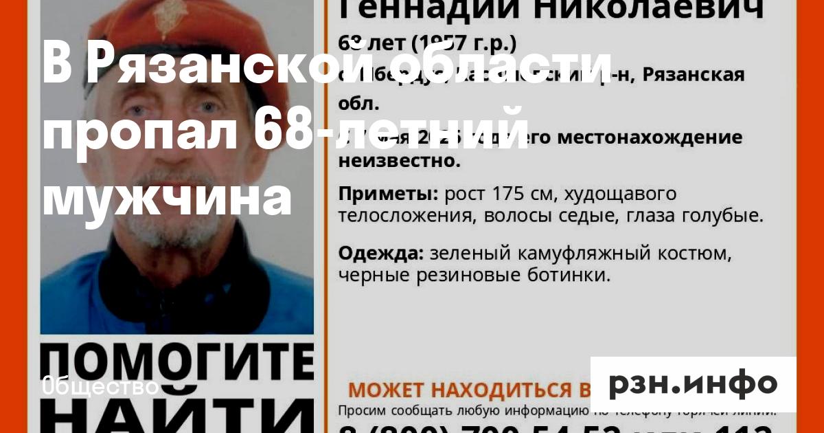 Отмечается, что с 7 мая местонахождение Геннадия Новикова из села Ирбедус Касимовского района неизвестно. Приметы: рост 175 см, худощавого телосложения, волосы седые, глаза голубые. Одежда: зеленый камуфляжный костюм, черные резиновые ботинки.