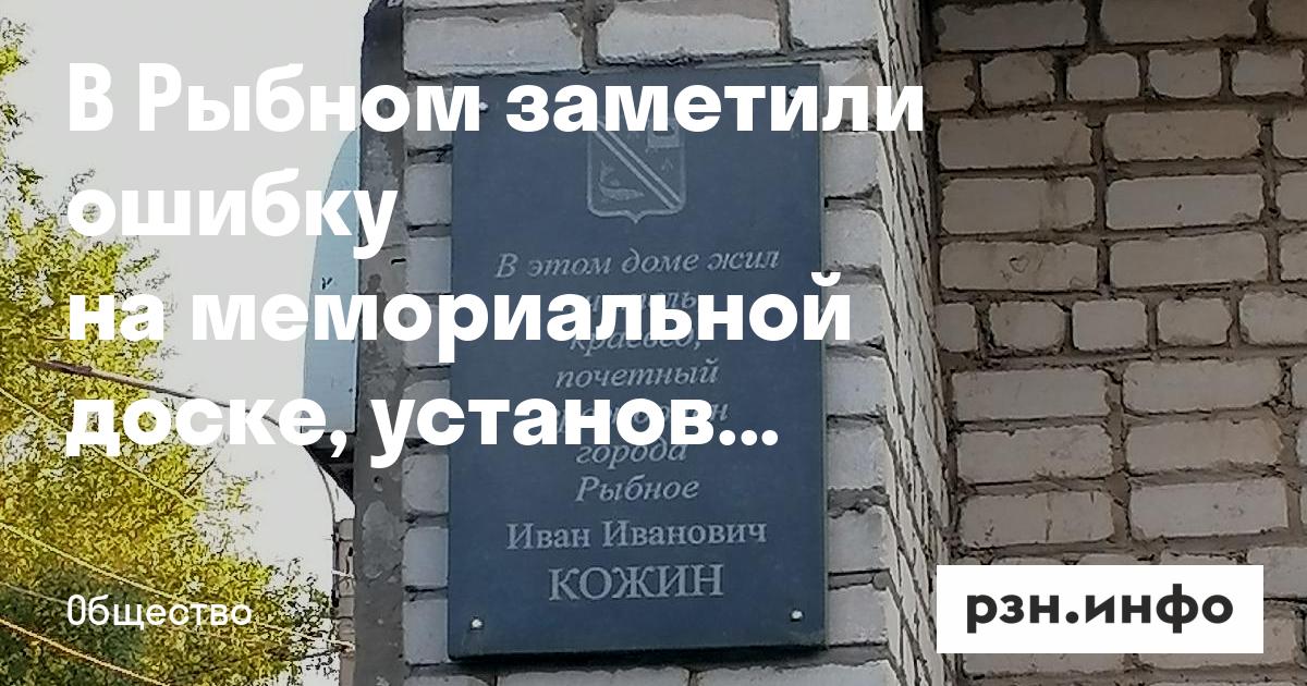 В Рыбном заметили ошибку на мемориальной доске, установленной почти два года назад. Пост об этом размещен в соцсетях.