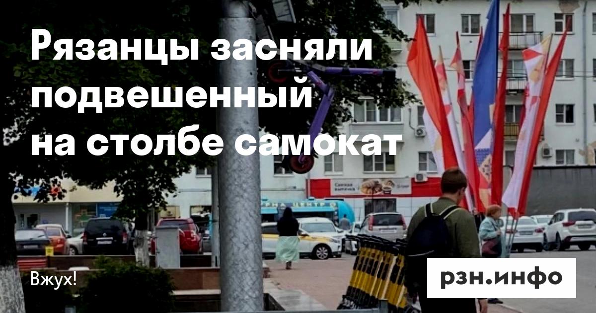 Рязанцы засняли подвешенный на столбе самокат