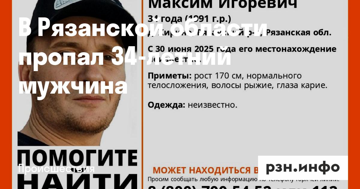 В Рязанской области пропал 34-летний мужчина