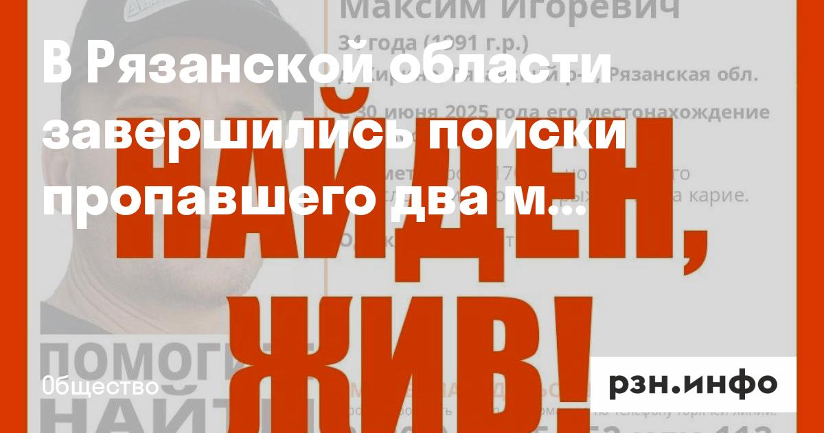 Максим Т. пропал в деревне Хирино Рязанского района. Его искали с 30 июня. 28 августа стало известно, что мужчину нашли живым.