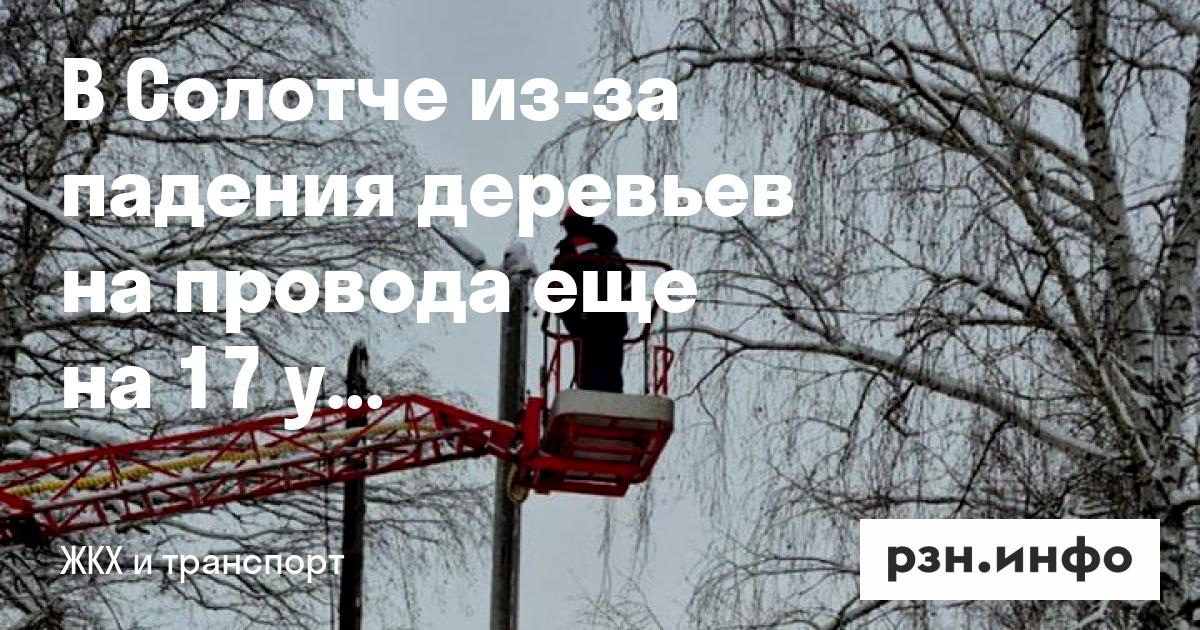 В Солотче из-за падения деревьев на провода еще на 17 улицах отключили свет. Об этом сообщили в соцсетях РГРЭС.