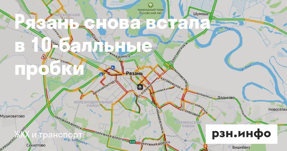 Рязань снова встала в 10-балльные пробки. Об этом свидетельствуют «Яндекс карты».