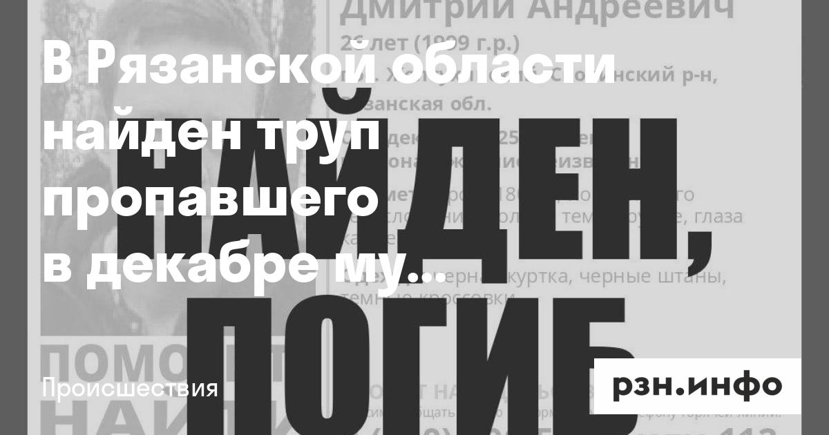 В Рязанской области найден труп пропавшего в декабре мужчины