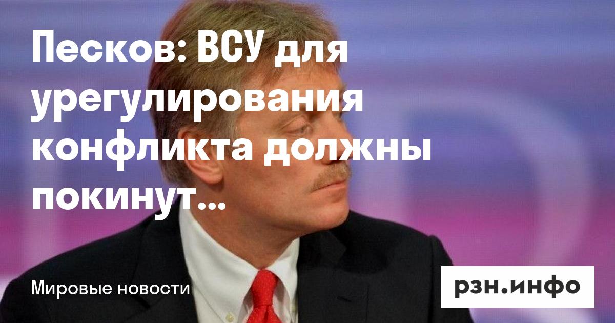 Пресс-секретарь президента РФ Дмитрий Песков заявил, что ВСУ должны покинуть территорию Донбасса для урегулирования конфликта. Его слова 23 января передало РИА Новости.