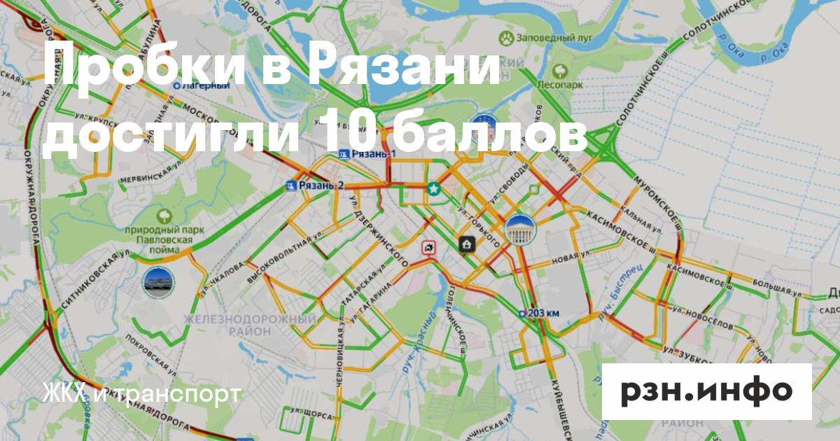 Пробки в Рязани достигли 10 баллов. Об этом сообщает сервис «Яндекс карты».
