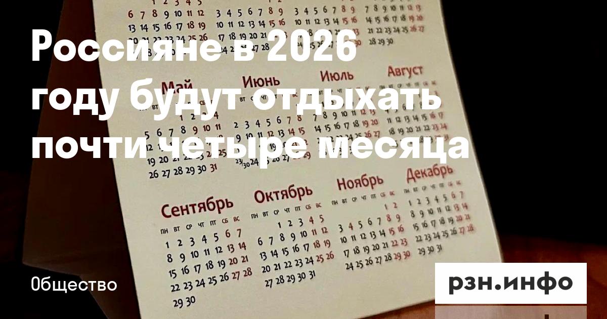 В 2026 году на выходные и праздничные дни у россиян придется 118 дней — почти четыре месяца. Об этом ТАСС сообщила эксперт Президентской академии Татьяна Подольская.