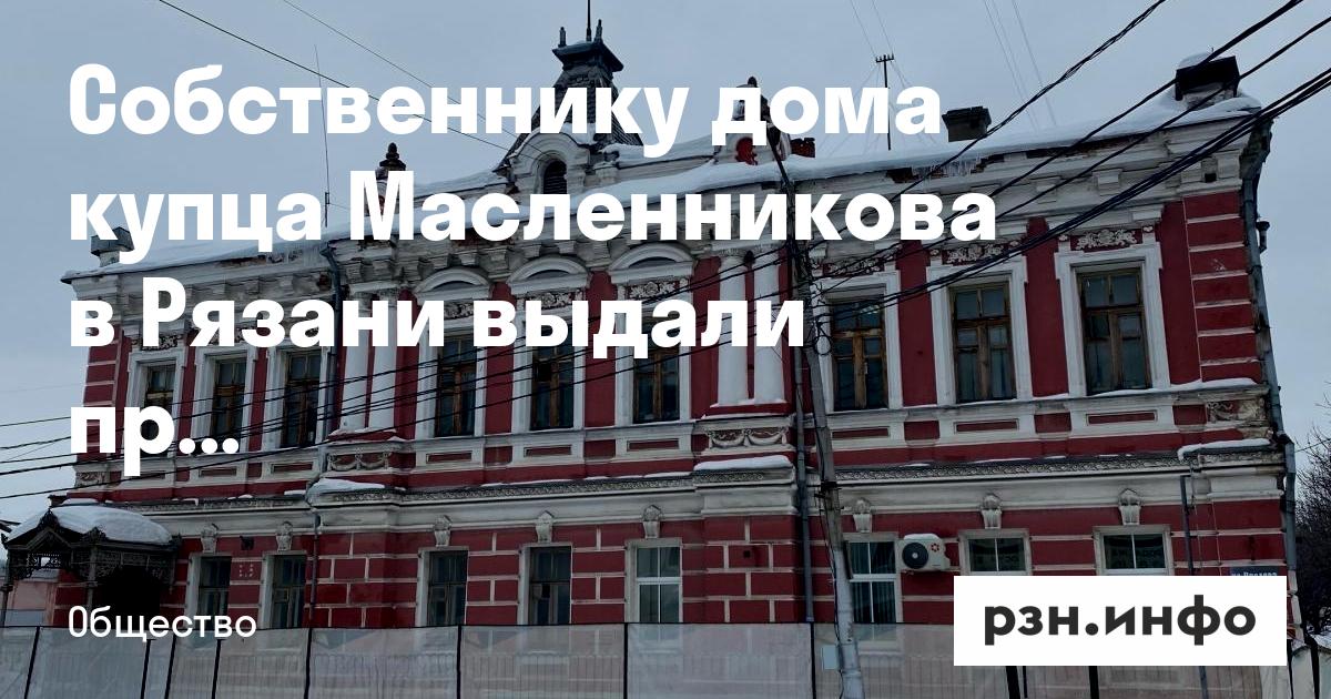 Собственнику дома купца Масленникова в Рязани выдали предостережение
