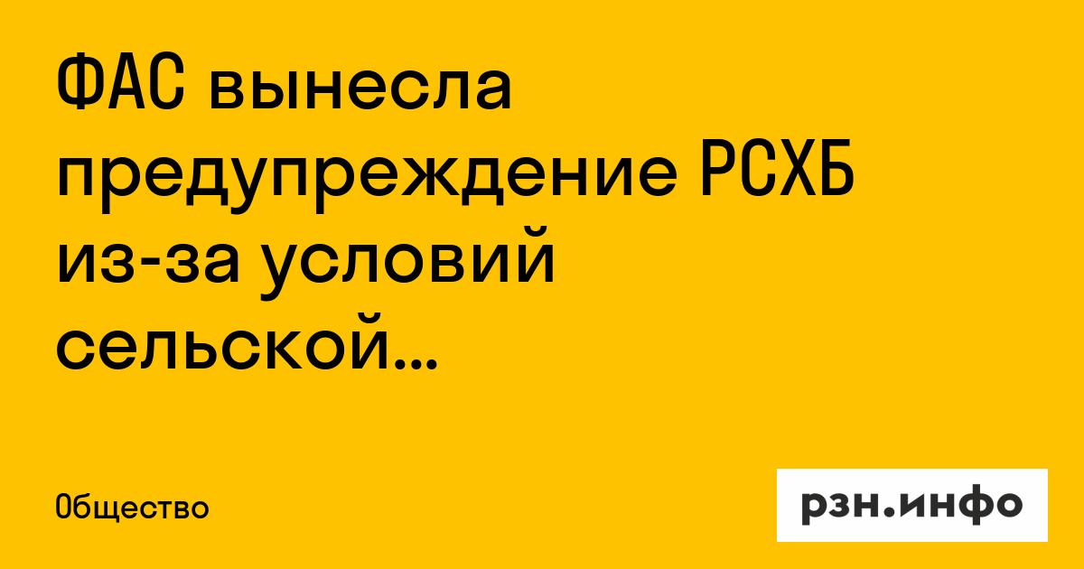«Служба предупредила АО „Россельхозбанк“ о необходимости отменить обязательное условие о выборе подрядчика только из числа включенных в перечень рекомендуемых банком подрядных организаций, удалить информацию об этом условии с интернет-ресурса банка „Свое село“ и исключить подобную практику в будущем», — говорится в сообщении.