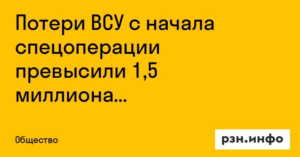 Потери ВСУ с начала спецоперации превысили 1,5 миллиона человек. Об этом сообщает РИА Новости.