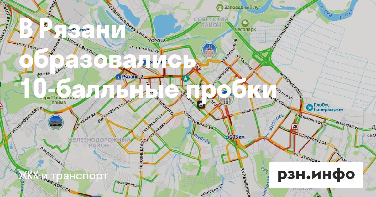В Рязани образовались 10-балльные пробки. Об этом сообщает сервис «Яндекс карты».