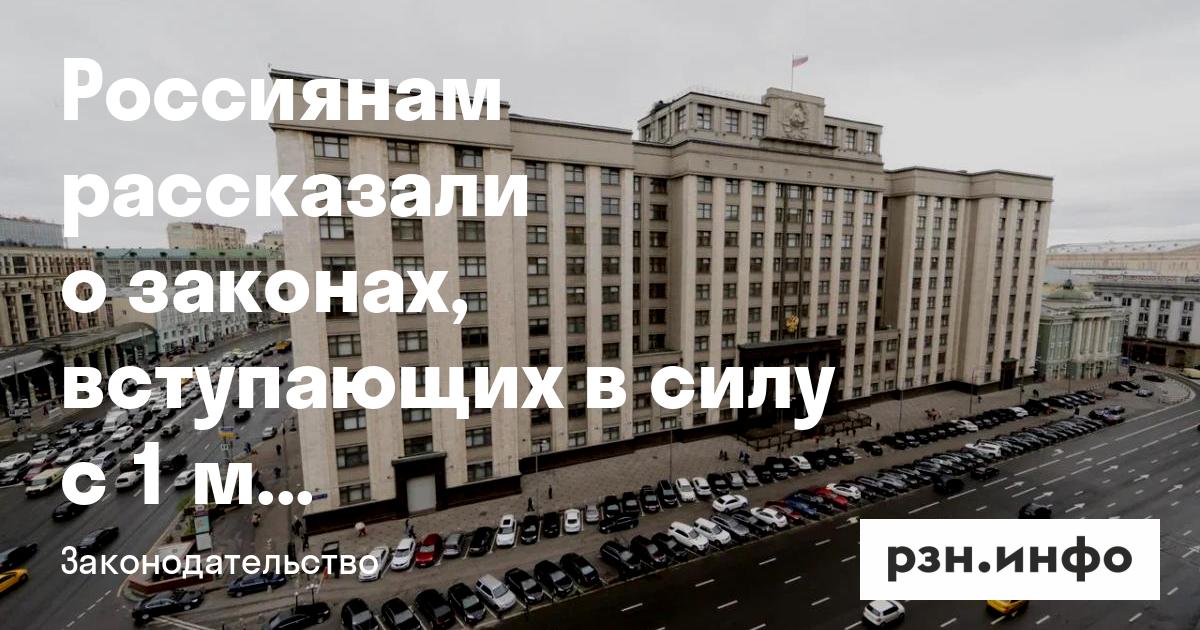 Россиянам рассказали о законах, вступающих в силу с 1 марта
