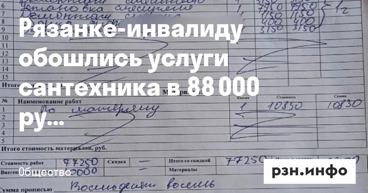 Рязанке-инвалиду обошлись услуги сантехника в 88 000 рублей