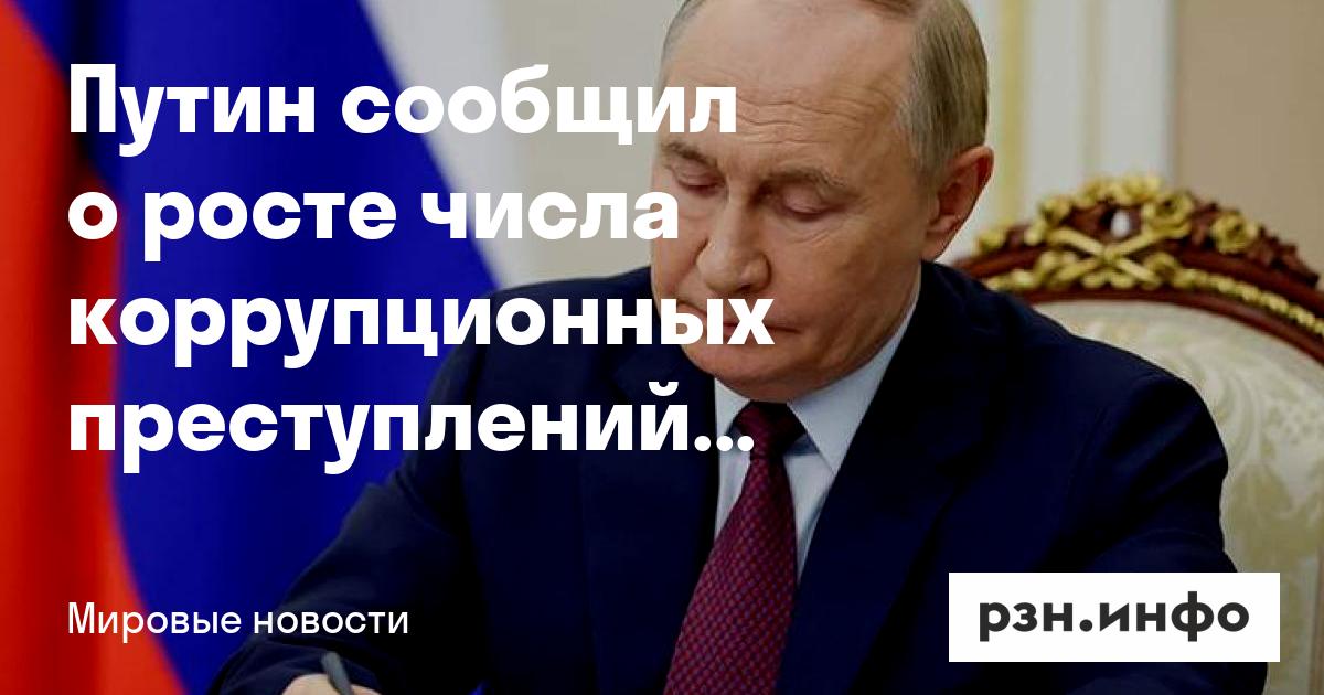 Число коррупционных преступлений в России в 2025 году выросло на 12,3%. Об этом заявил президент Владимир Путин на расширенном заседании коллегии Генпрокуратуры, передает РИА Новости.