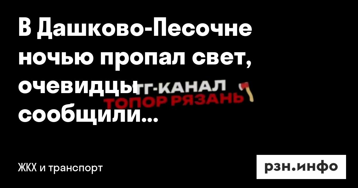 Жители района Дашково-Песочня сообщили об отключении света ночью. Информация об этом появилась в телеграм-канале «Топор. Рязань».