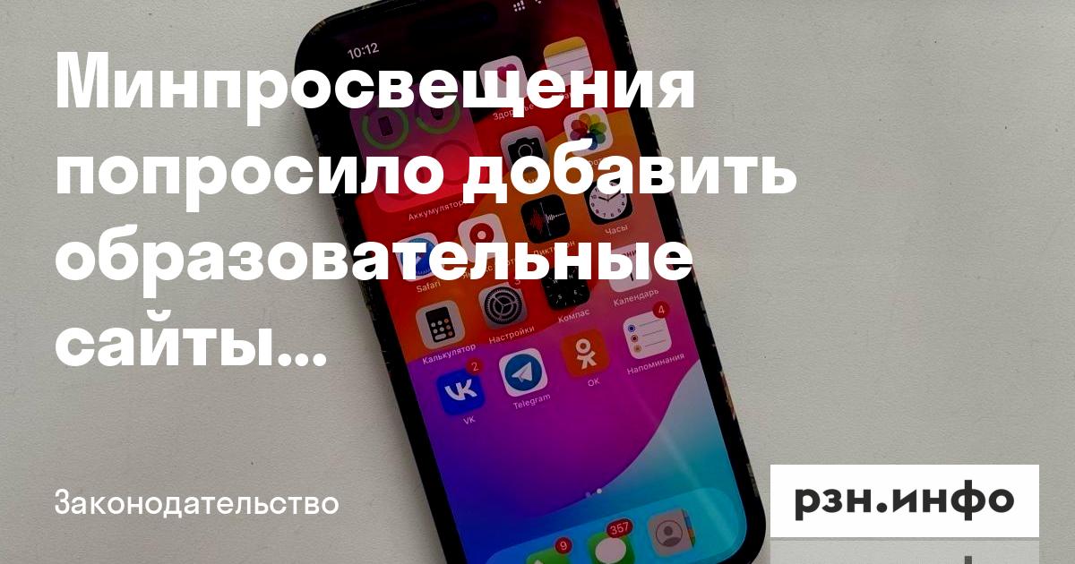 В список Минпросвещения предложило включить официальный сайт министерства, цифровых помощников ученика, педагога и родителя, портал дополнительного образования «Цифровая образовательная среда ДПО», конструкторы рабочих программ и учебных планов, а также сайты «Земский учитель», «Усыновление в РФ», «Растимдетей. рф» и «Десятилетие детства».