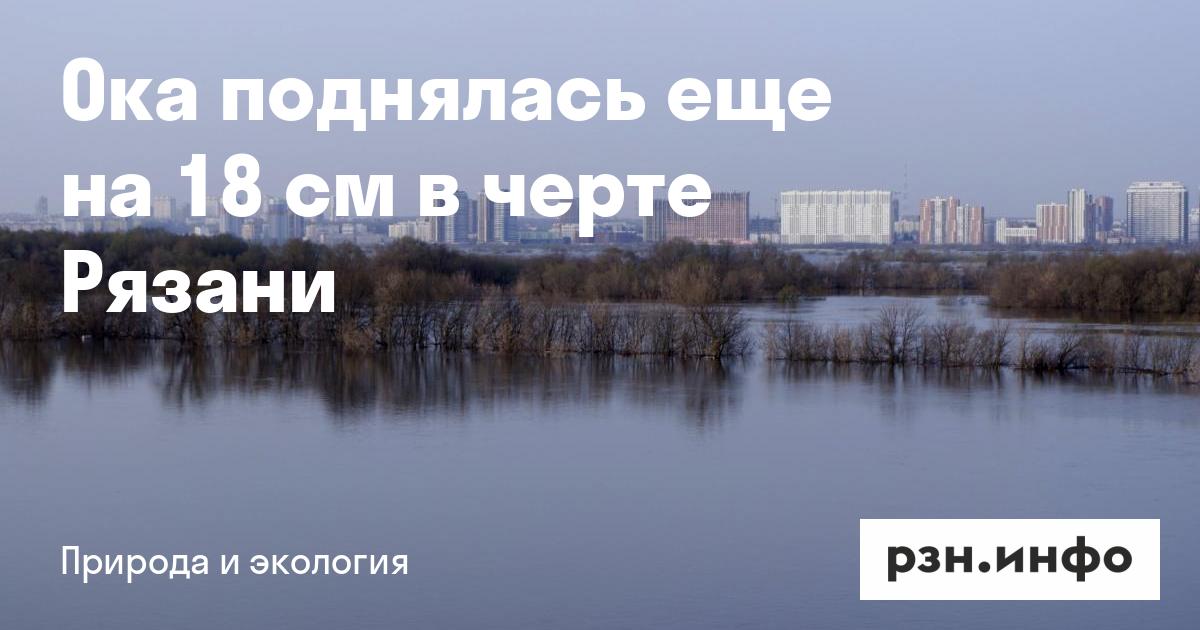 В Рязани за сутки Ока поднялась на 18 сантиметров и составляет 82 сантиметра. В районе села Старая Рязань уровень воды в Оке повысился на 13 сантиметров и составляет 158 сантиметров. В Касимове уровень воды в Оке поднялся на 5 сантиметров и составляет 150 сантиметров.