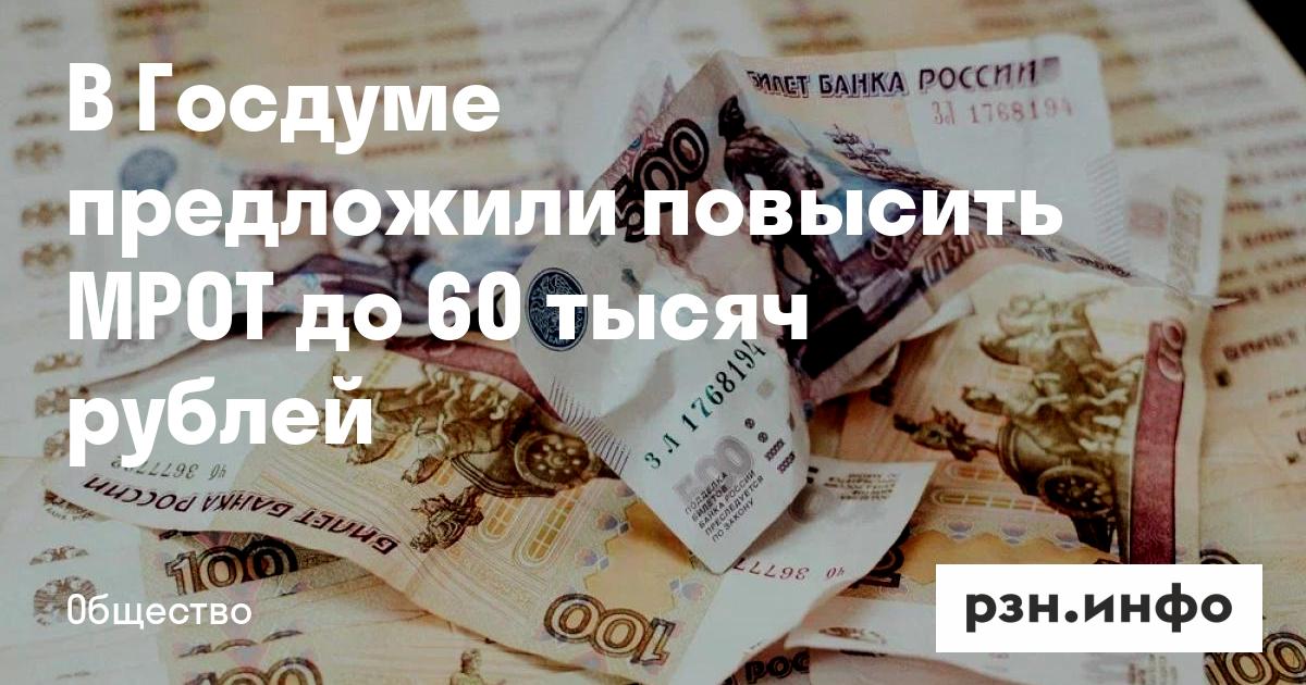 В Госдуме предложили повысить МРОТ до 60 тысяч рублей