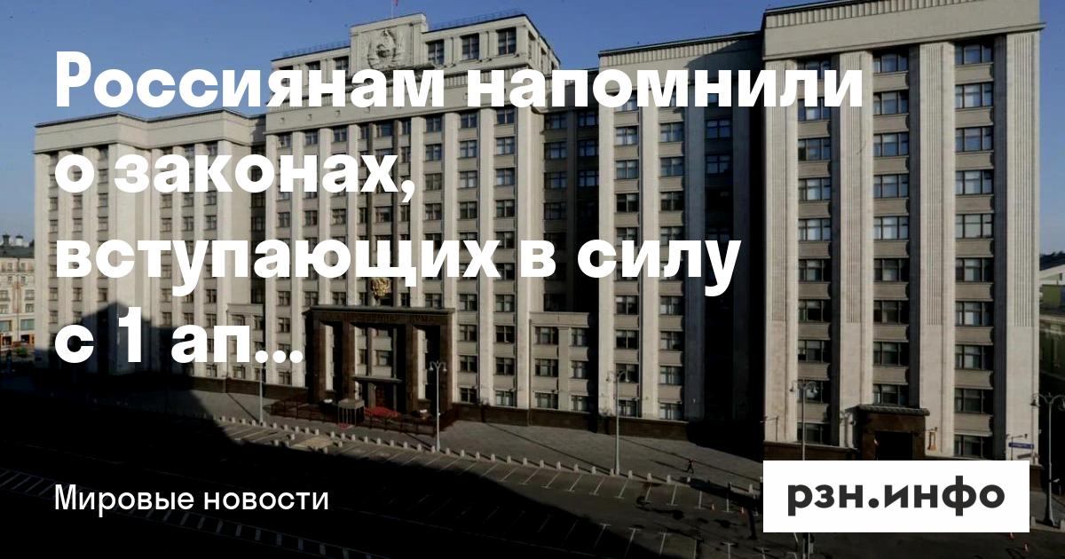 Россиянам напомнили о законах, вступающих в силу с 1 апреля