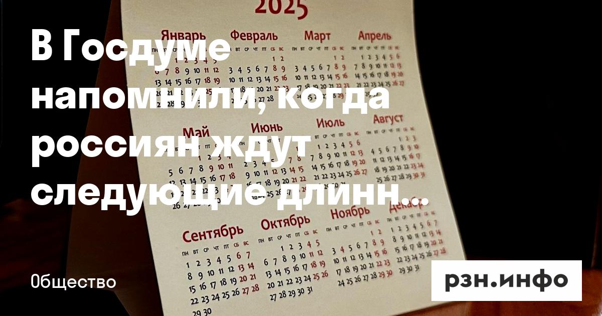 В Госдуме напомнили, когда россиян ждут следующие длинные выходные