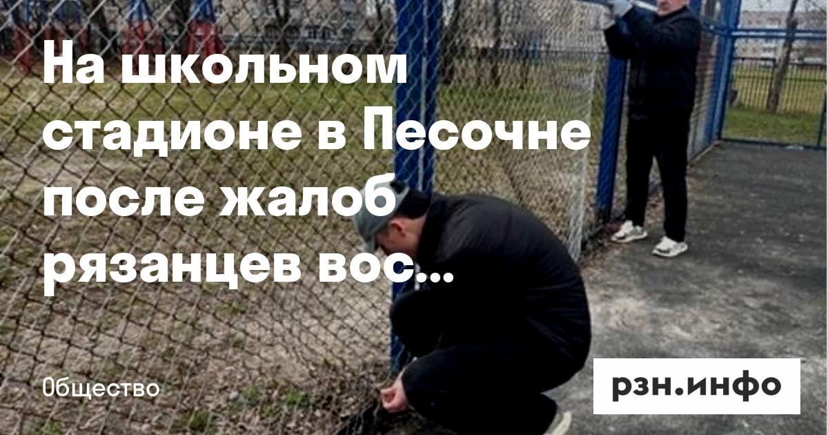 На школьном стадионе в Песочне после жалоб рязанцев восстановили ограждение
