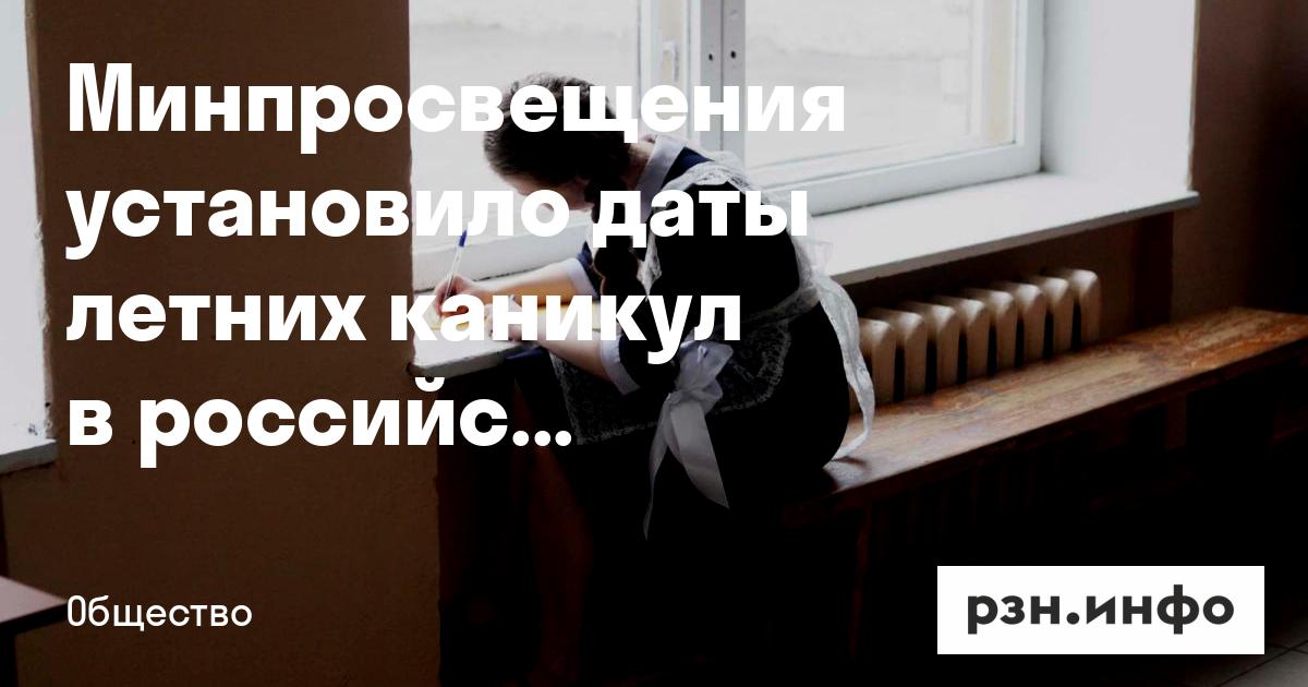Минпросвещения установило даты летних каникул в российских школах. Об этом 28 апреля сообщило РИА Новости.