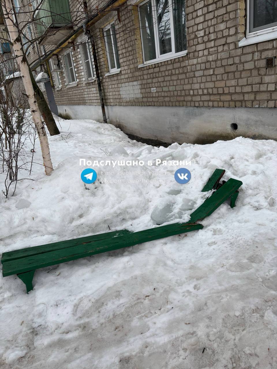На улице Новикова-Прибоя, 22 в Рязани с крыши дома сошел снег с большим куском льда. Как отметили в телеграм-канале «Подслушано Рязань», образовавшаяся глыба упала прямо во двор и сломала лавочку.